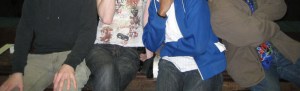 Then it dawned on my Sunday evening, as I rested my still aching muscles from the previous day’s march: everywhere I have lived I have encountered this group of people. People who may have rather different personalities, backgrounds, and might never have met outside of this one hobby and/or passion. As soon as I stepped on Wabash’s campus, I was presented with friends who played a slew of games, ranging from video to card to pen and paper to role playing to drinking to many others (a selection of four of us sans heads are pictured above). Within the span of a month we became close-knit friends and then branched out and accepted other gamers on campus, sometimes forming together and often conversing. Everyone in that group also happened to either become a theater major or minor by our graduation (many with no previous plan to do so; we theater folk are infectious, I warn you).