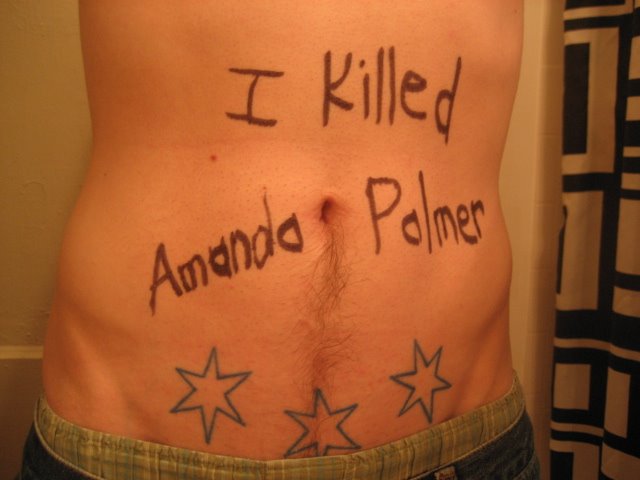 Oh, and I support Amanda Palmer–going to see her this Wednesday here in Chicago, in fact. The writing is an allusion to her album, Who Killed Amanda Palmer?: